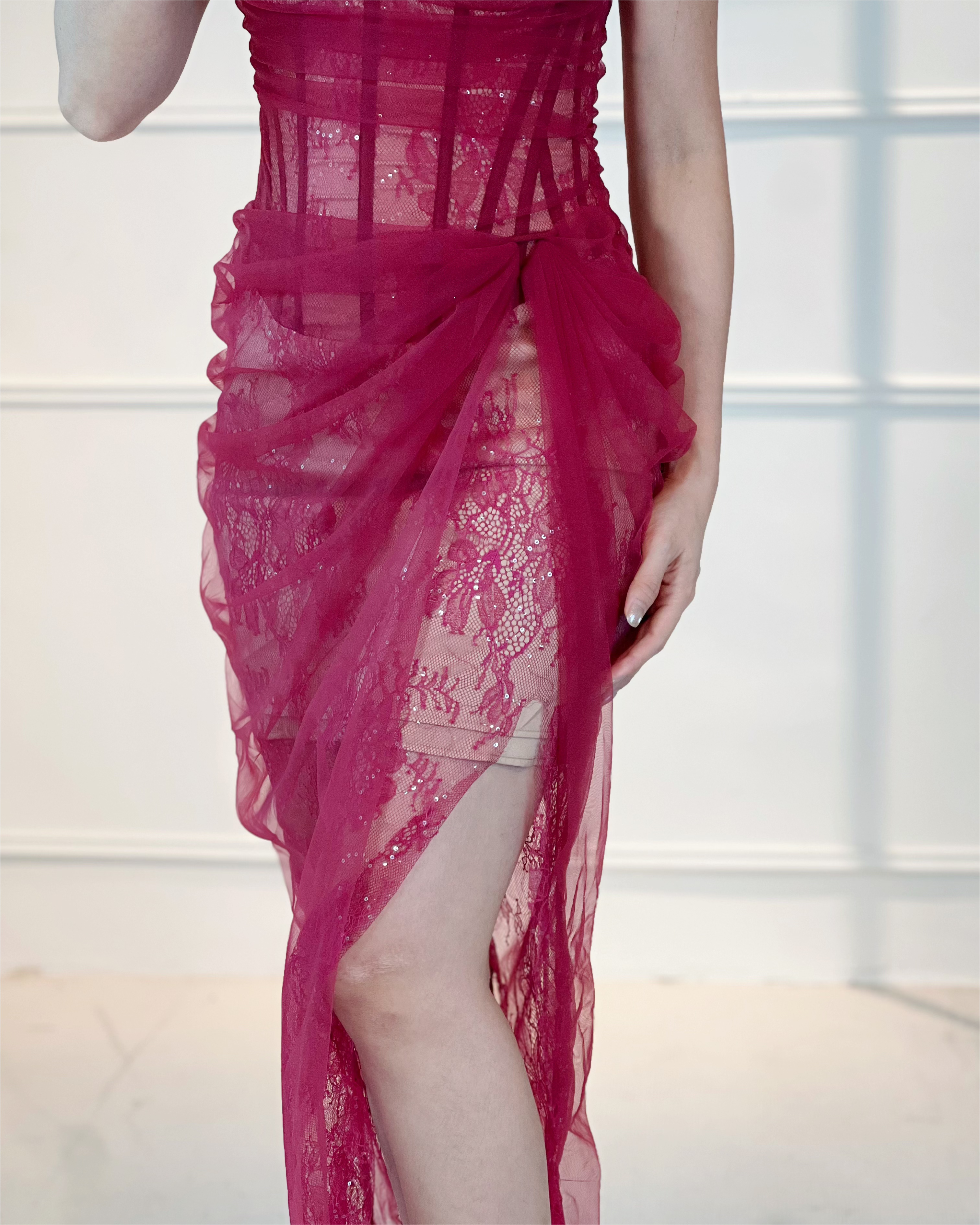 5069 Crimson Strapless Maxi Dress ( Maroon )